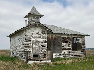 On today's journey we stopped at Meyer Township School No. 1. It was one of those photo spots I couldn't pass up. There's so much mystery and history in places like this. Sitting old and forgotten in a field five miles out of Rugby, this little school is a reminder of years gone by. At one time, many years ago, this little school probably had kids running around outside playing tag or just enjoying some sunshine. I wondered what the inside of the school must look like until I saw that one panel of the locked front door was missing. I put my camera through the opening and clicked a few pictures. To my surprise, the first thing I noticed was color. I din't expect anything but worn and weathered wood like the exterior. Another picture showed a blackboard and chair in what was the only classroom. Thinking about this old school, I wondered when it was last used, how many students attended, and where are they now? History and memories. I'd love to hear some stories from students from Meyer Township School No. 1.
